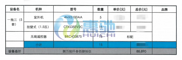 部分空調(diào)設(shè)備配置表